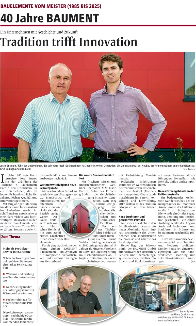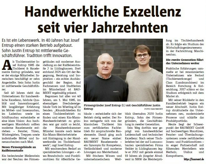 Umbenennung von Tischlerei Bauelemente Entrup in BAUMENT Bauelemente
